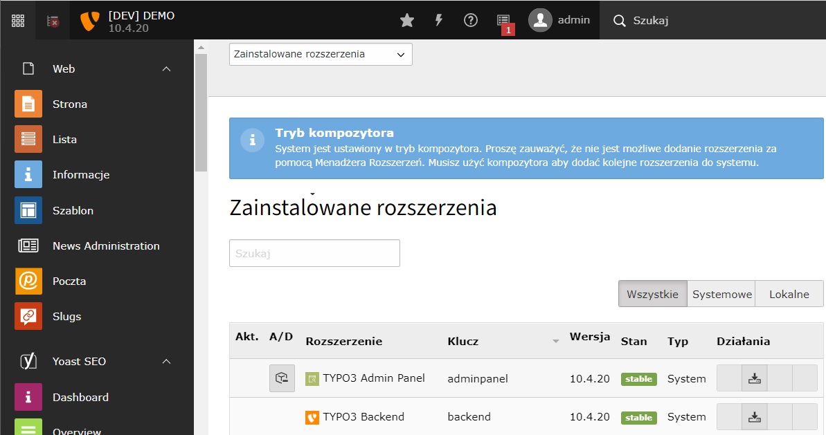 - umożliwia instalacje dodatkowych modułów takich jak blog, formularze itd.